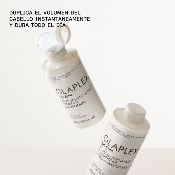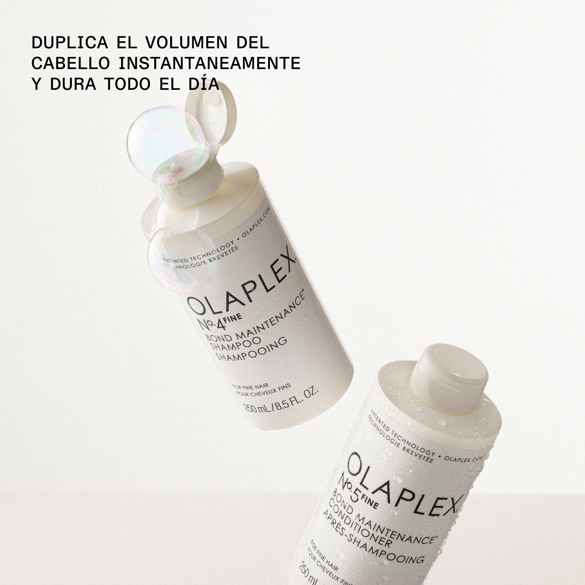 Probados clínicamente, su efecto ultraligero aporta 2x más volumen y 2x más fuerza desde la primera aplicación. Con OLAPLEX N°.4 FINE Bond Maintenance Shampoo y Olaplex N°.5 FINE Bond Maintenance Conditioner, tu cabello fino adquiere cuerpo, movimiento natural y una resistencia superior, listo para cualquier estilo.